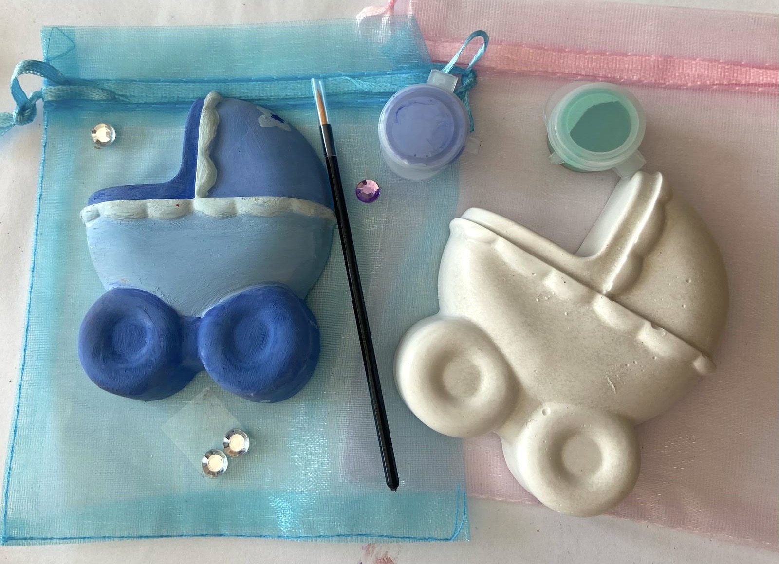Choose from a teddy, pram, dummy, rattle, bottle, foot – or a mix of shapes when ordering packs of 6 or 10 Craft Kits.